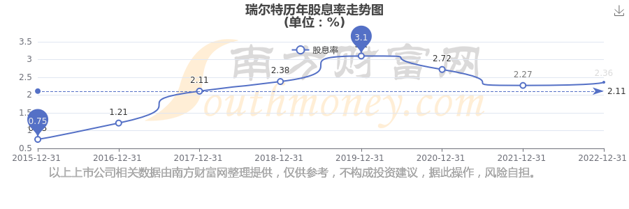 近年瑞爾特年度股息率走勢(shì)如下圖: