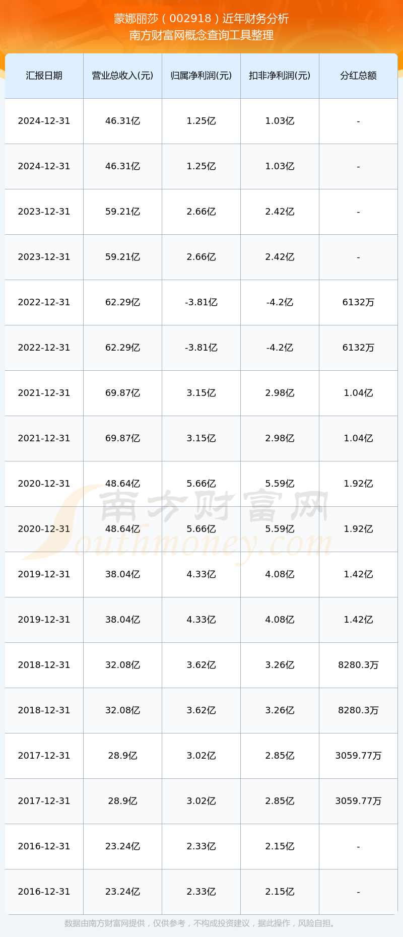 近年蒙娜麗莎分紅派息情況如下表所示: