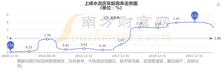 上峰水泥歷年股息率走勢(shì)如下圖: