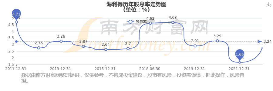 海利得歷年股息率走勢(shì)如下圖: