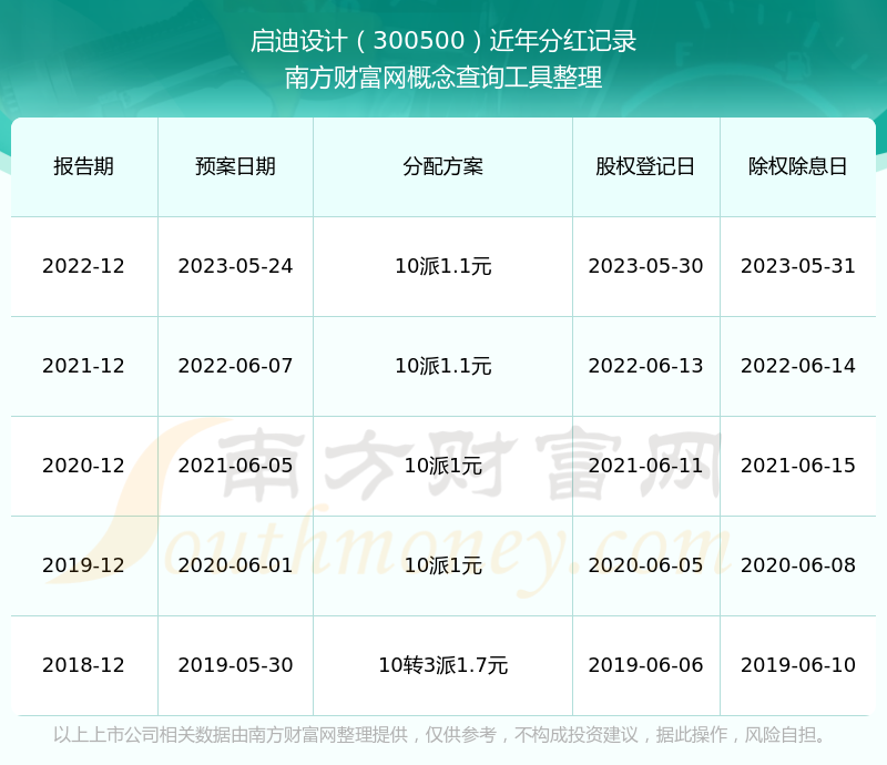 啟迪設計歷年分紅派息情況如下表所示: