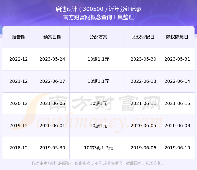一、啟迪設(shè)計(jì)(300500)股票分紅記錄