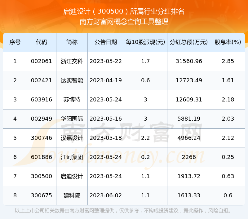 二、啟迪設(shè)計(jì)300500行業(yè)分紅排名
