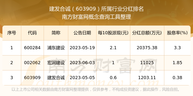 二、建發(fā)合誠(chéng)603909行業(yè)分紅排名