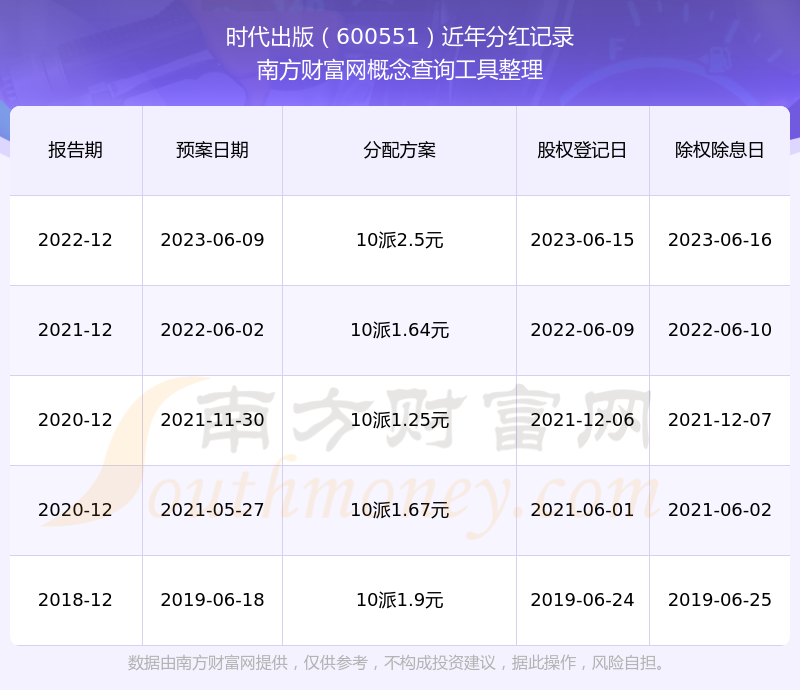 一、時(shí)代出版(600551)股票分紅記錄