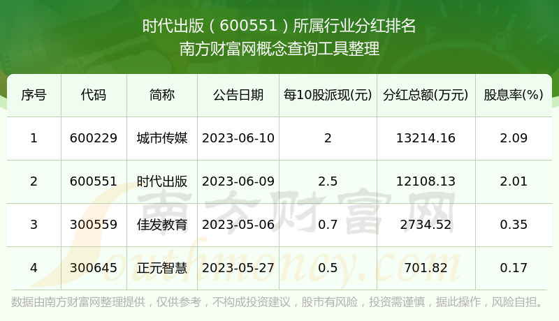 二、時(shí)代出版600551行業(yè)分紅排名
