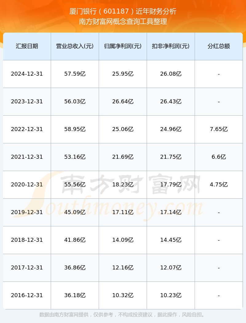 廈門銀行歷年分紅派息情況如下表所示:
