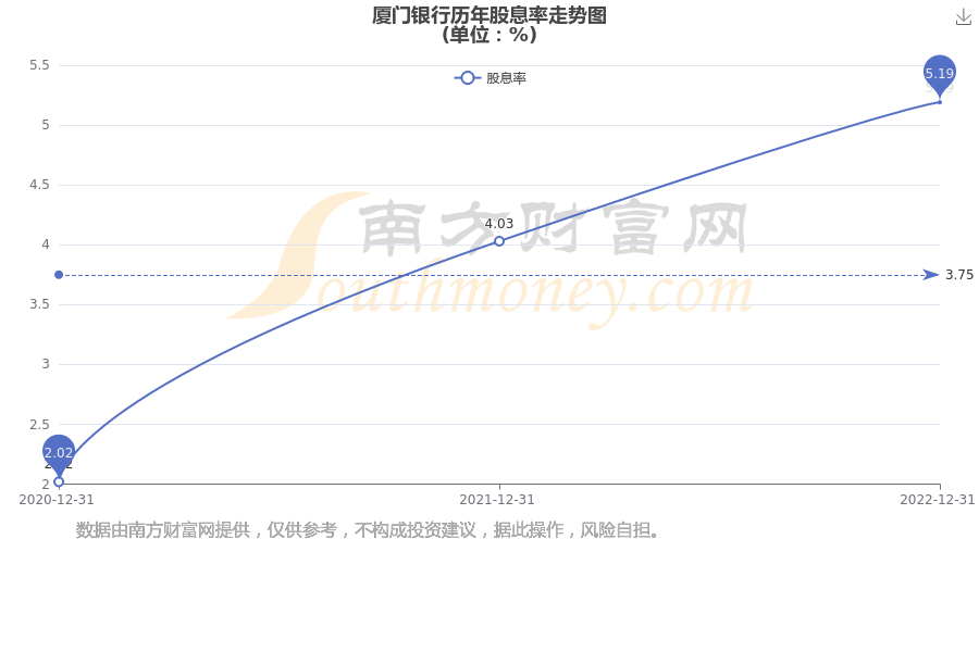 廈門銀行歷年股息率走勢如下圖: