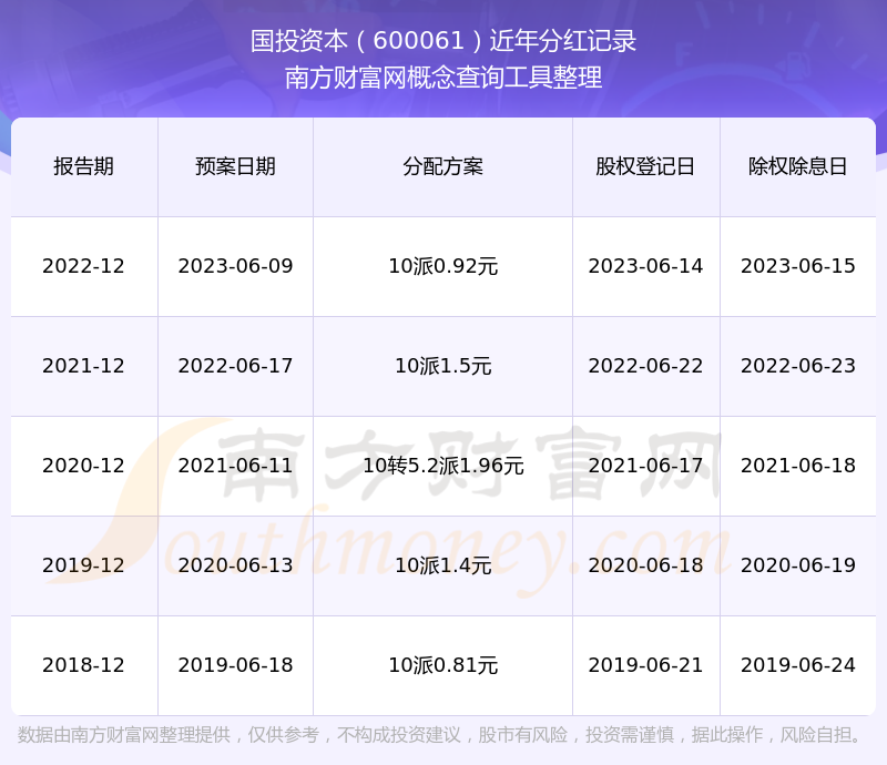 國投資本歷年分紅派息情況如下表所示: