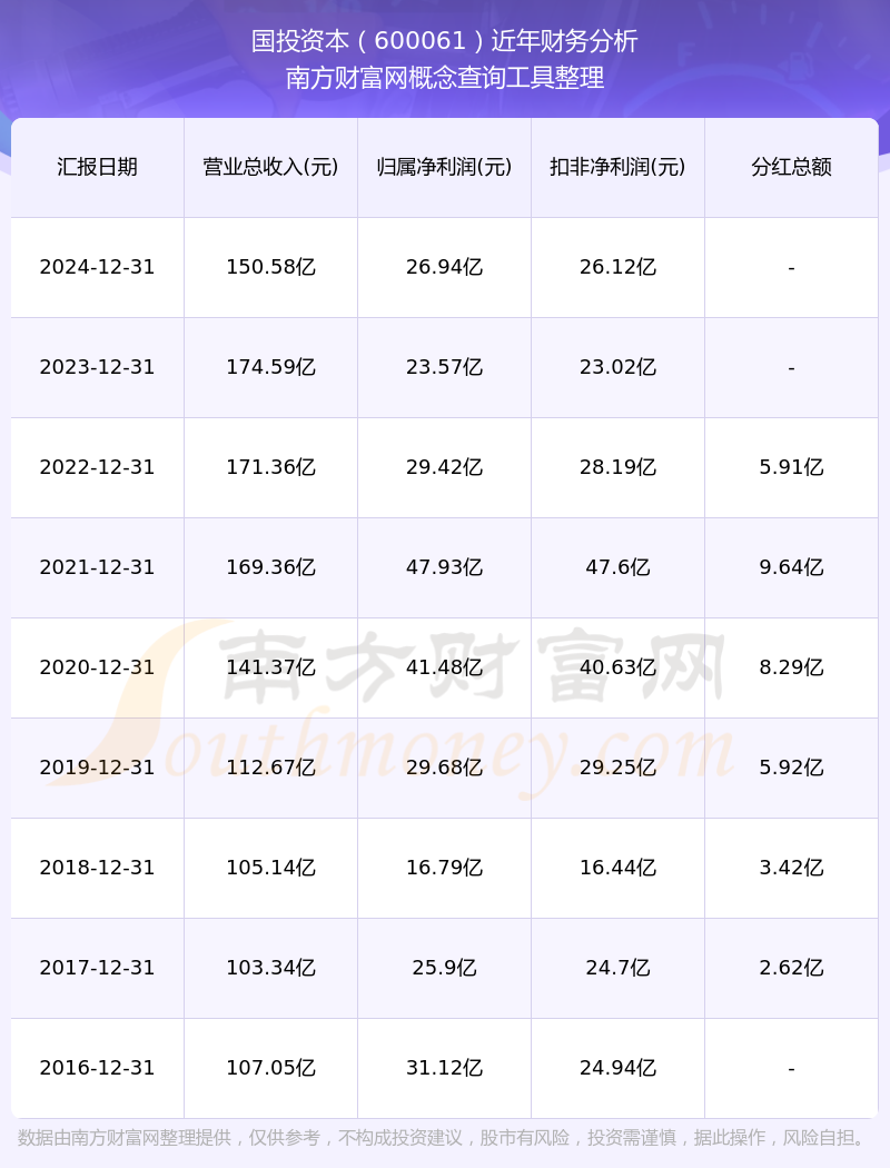 2024年報顯示,國投資本實現(xiàn)營收150.58億,同比增長-13.76%;凈利潤26.94億,同比增長14.32%;毛利率2.36%。