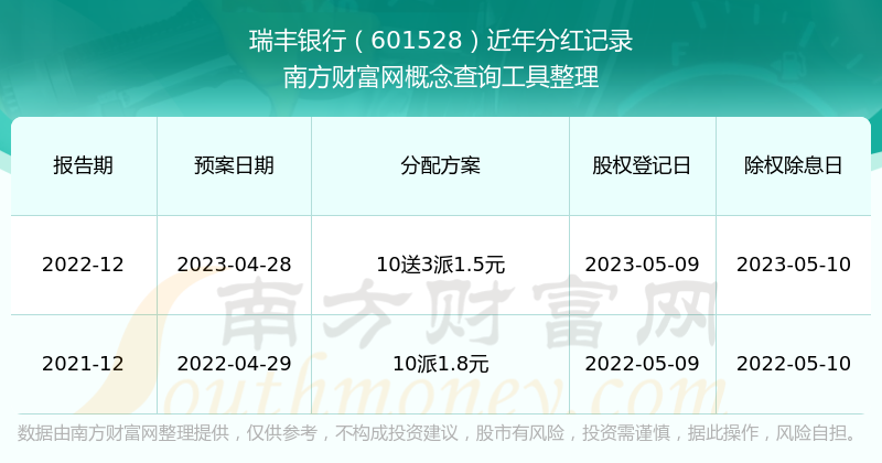 瑞豐銀行最新一次公布的分紅方案:10送3派1.5元。