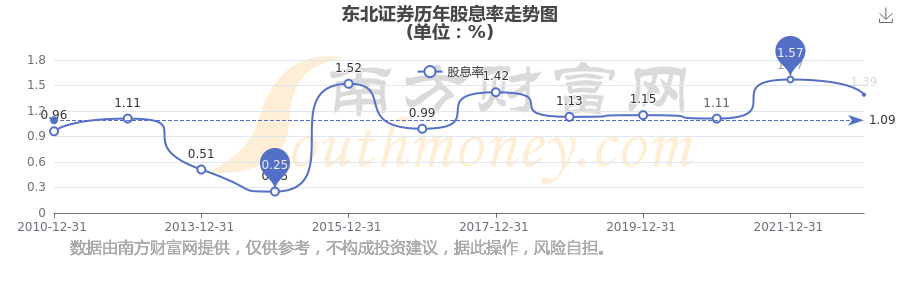 東北證券歷年股息率走勢如下圖: