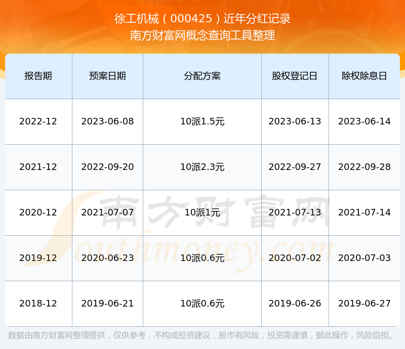 近年徐工機(jī)械分紅派息情況如下表所示: