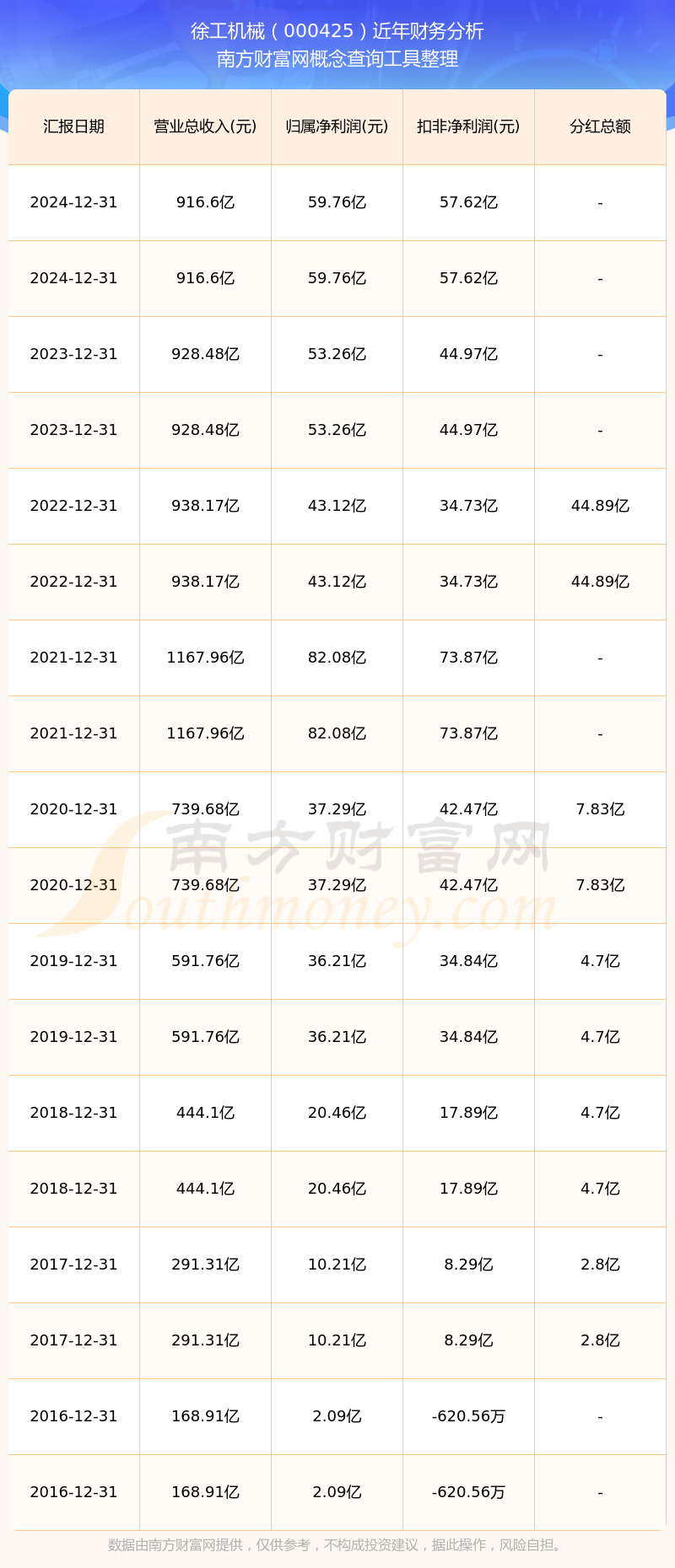 2024年報(bào)顯示,徐工機(jī)械實(shí)現(xiàn)營(yíng)收916.6億,同比增長(zhǎng)-1.28%;凈利潤(rùn)59.76億,同比增長(zhǎng)12.2%;毛利率22.55%。