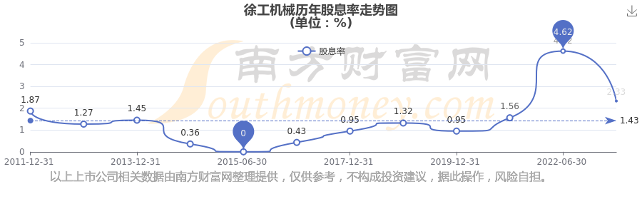 徐工機(jī)械歷年股息率走勢(shì)如下圖: