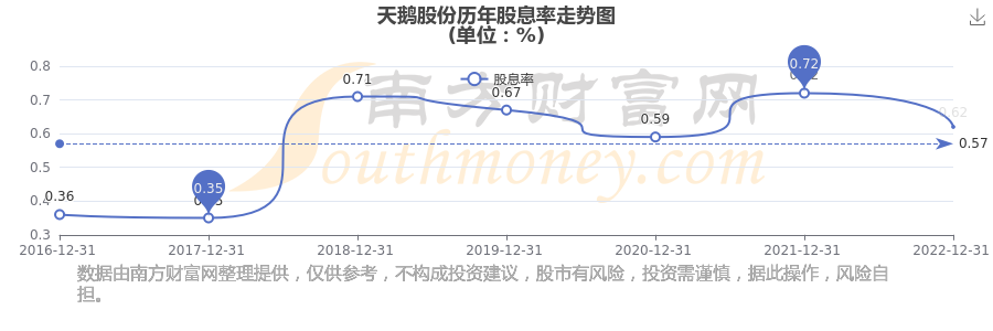 天鵝股份歷年股息率走勢(shì)如下圖: