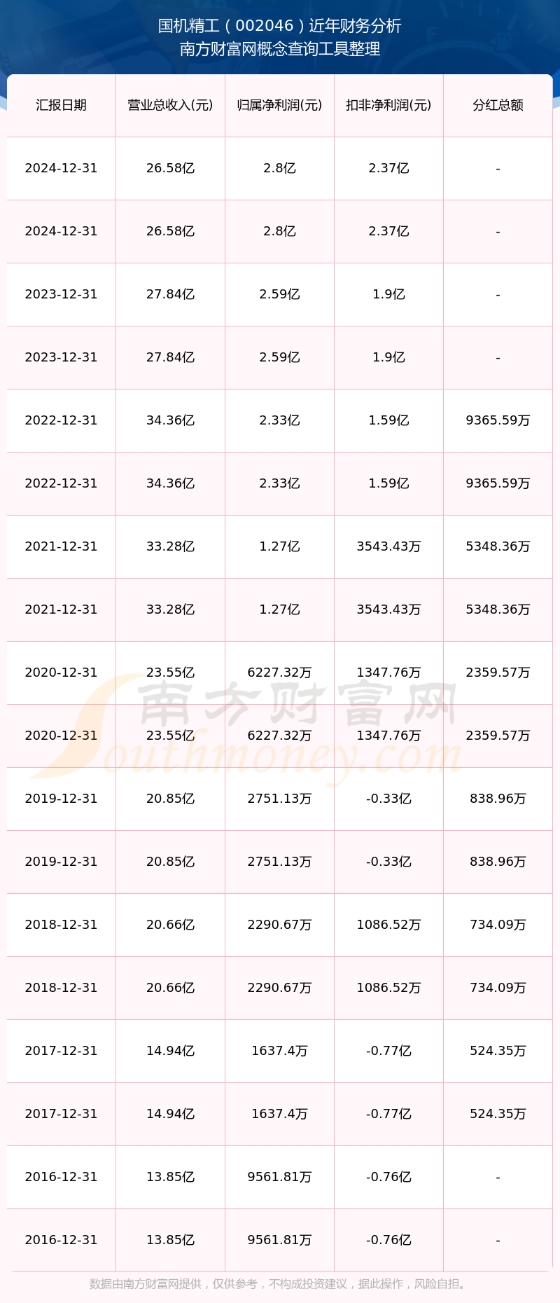 國機精工2024年總營收26.58億,同比增長-4.53%;凈利潤2.8億,同比增長8.11%;銷售毛利率35.27%。