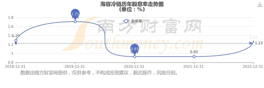 近年海容冷鏈年度股息率走勢如下圖: