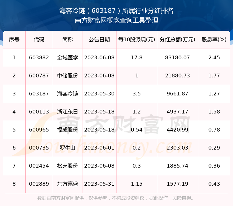 二、海容冷鏈603187行業(yè)分紅排名