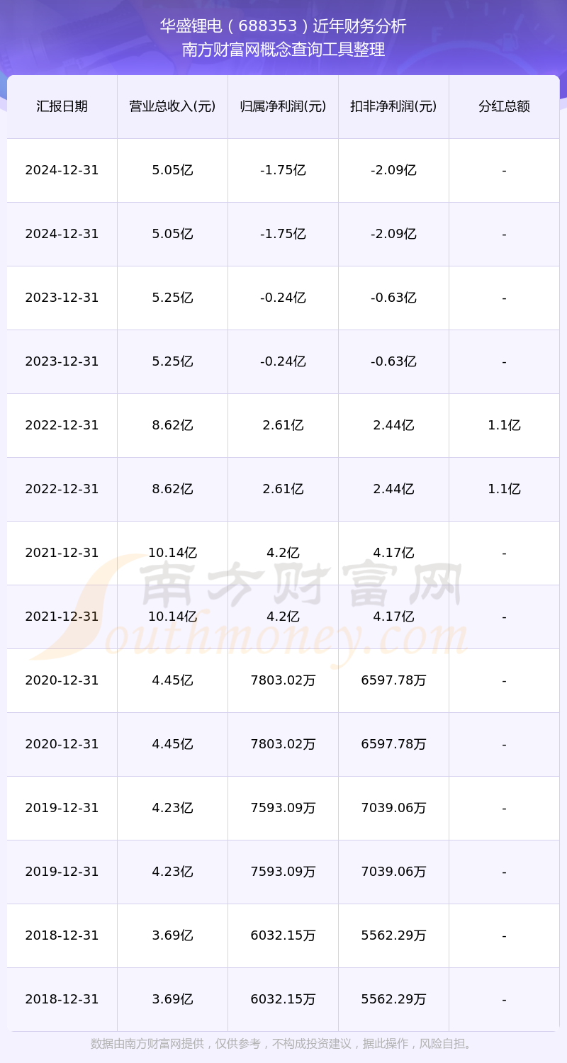 華盛鋰電歷年分紅派息情況如下表所示: