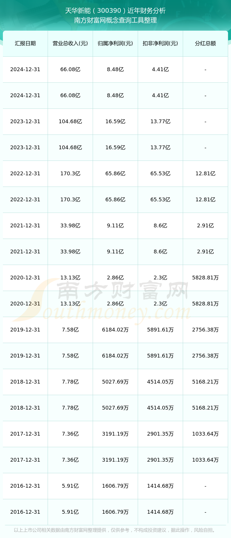 天華新能2024年總營收66.08億,同比增長-36.87%;凈利潤8.48億,同比增長-48.91%;銷售毛利率22.57%。