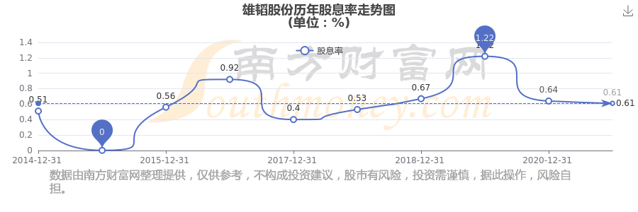 雄韜股份歷年股息率走勢(shì)如下圖: