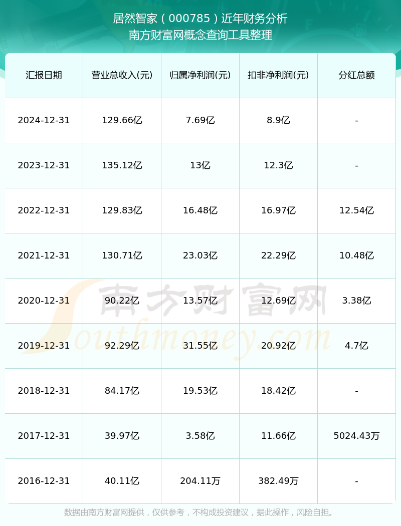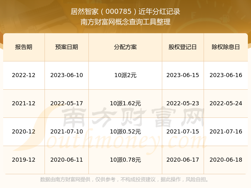 近年居然智家分紅派息情況如下表所示: