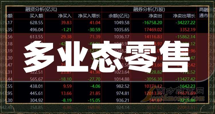 據(jù)南方財富網(wǎng)概念查詢工具數(shù)據(jù)顯示,多業(yè)態(tài)零售概念股票有: