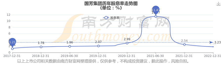近年國(guó)芳集團(tuán)年度股息率走勢(shì)如下圖: