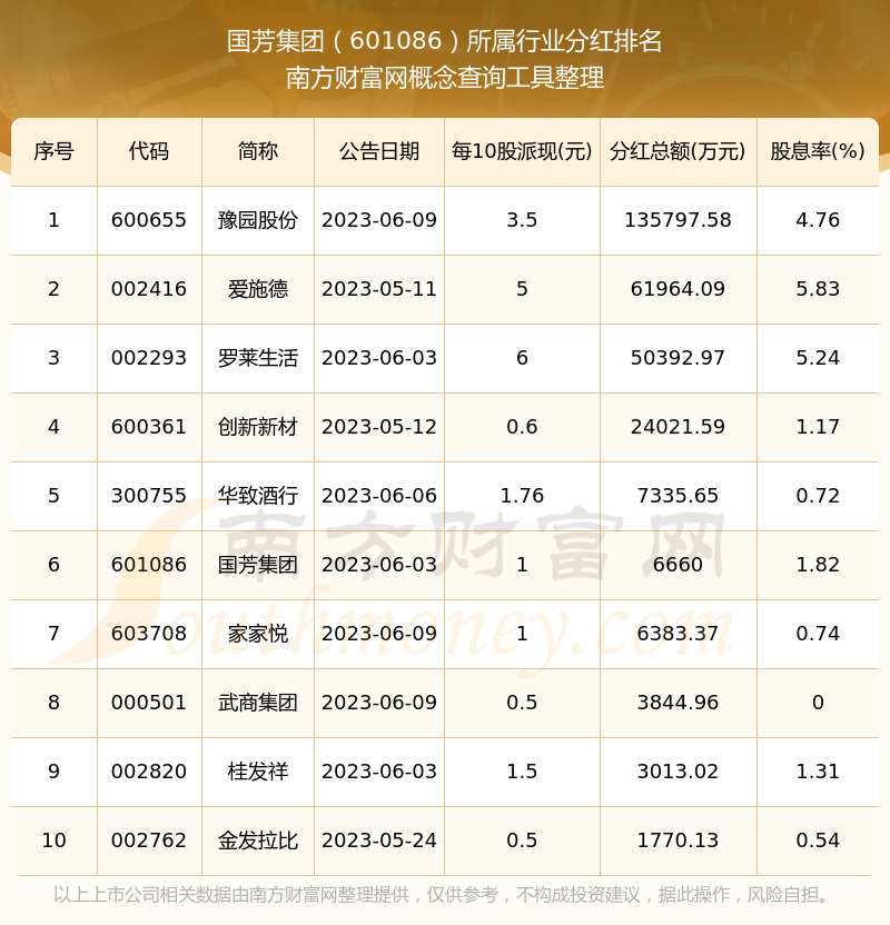 二、國(guó)芳集團(tuán)601086行業(yè)分紅排名