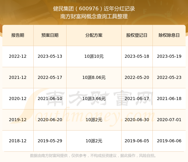 近年健民集團(tuán)分紅情況如下表所示: