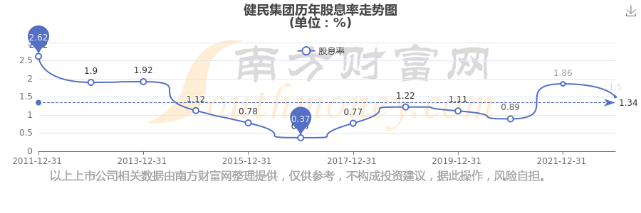 近年健民集團(tuán)年度股息率走勢(shì)如下圖: