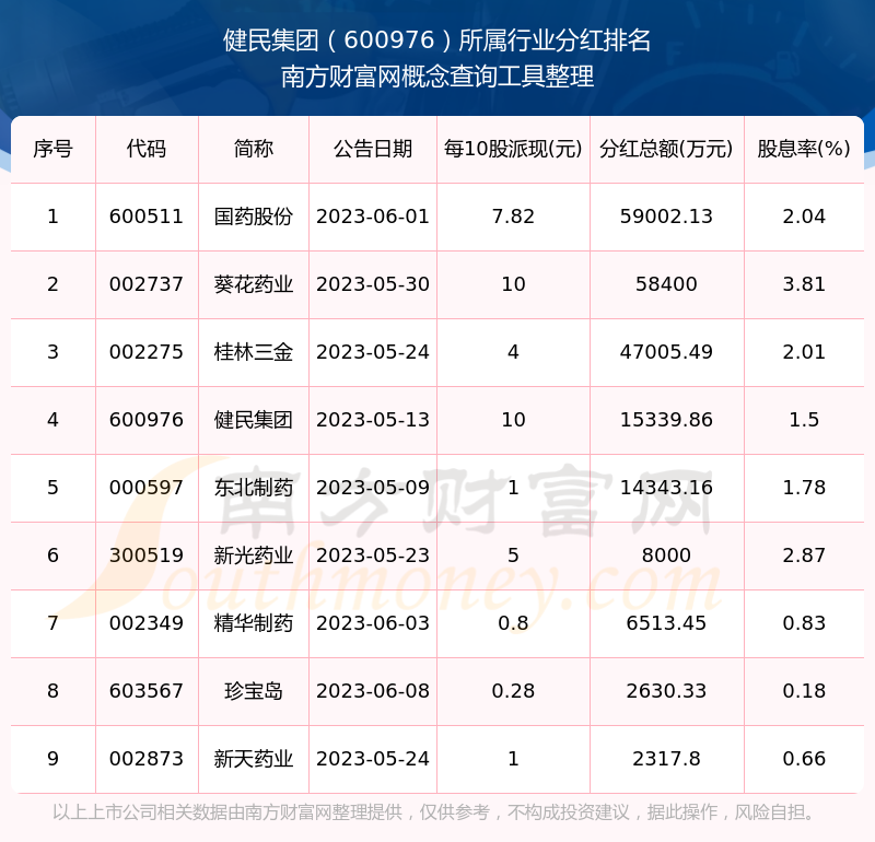 二、健民集團(tuán)600976行業(yè)分紅排名