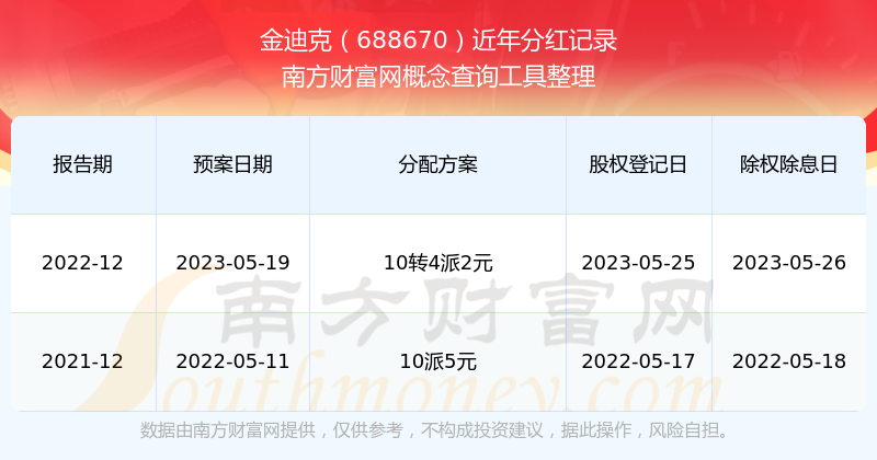 金迪克最新一次公布的分紅方案:10轉4派2元。