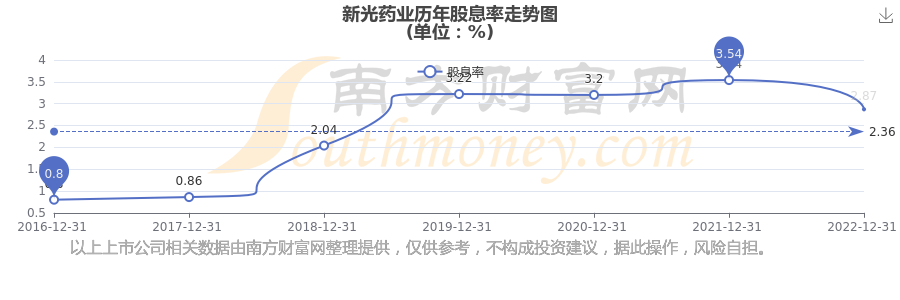 近年新光藥業(yè)年度股息率走勢(shì)如下圖: