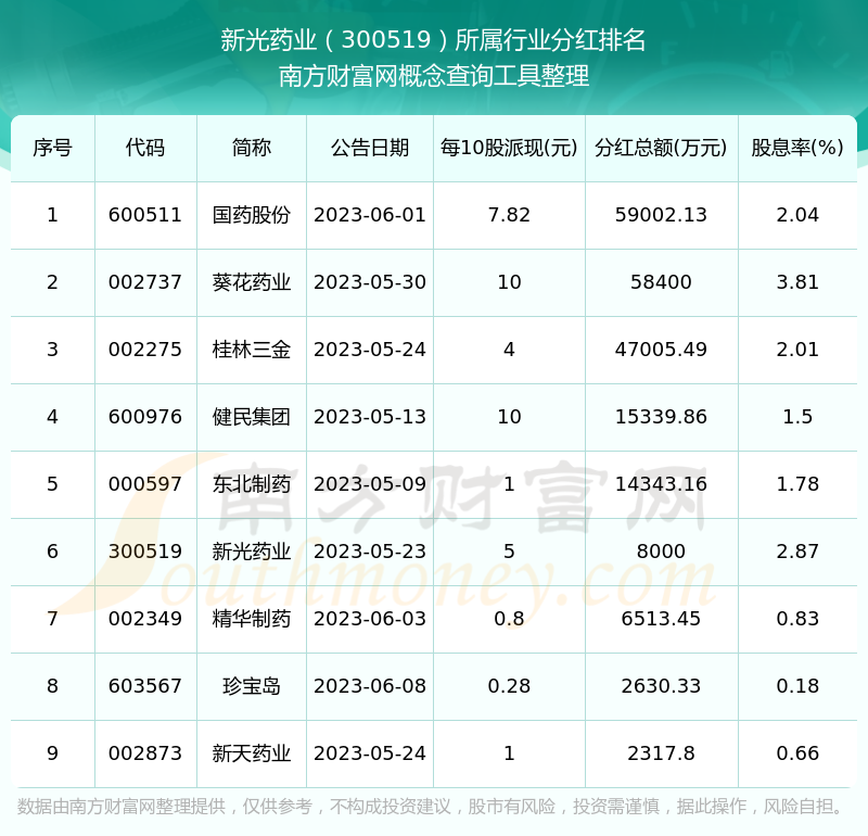二、新光藥業(yè)300519行業(yè)分紅排名