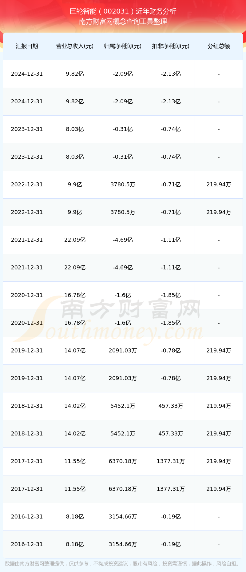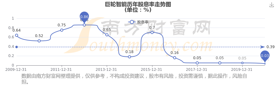 巨輪智能最新一次公布的分紅方案:10派0.01元。