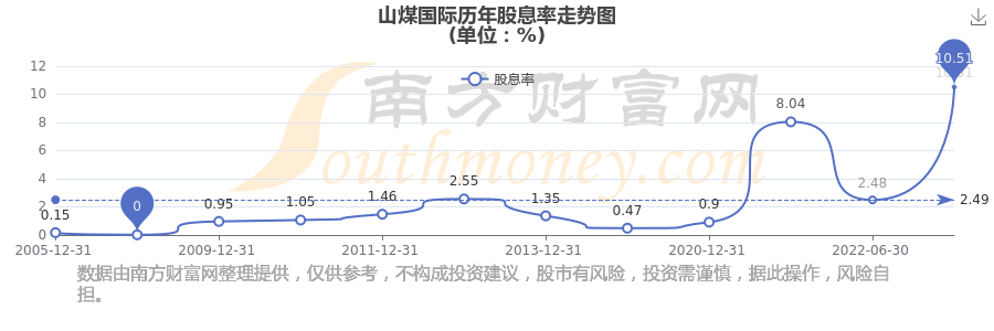 山煤國際歷年股息率走勢如下圖:
