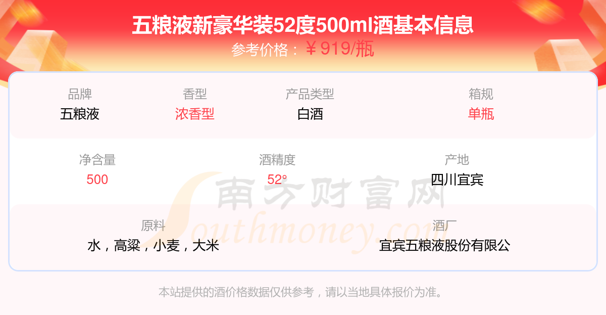 五糧液新豪華裝52度500ml基本信息