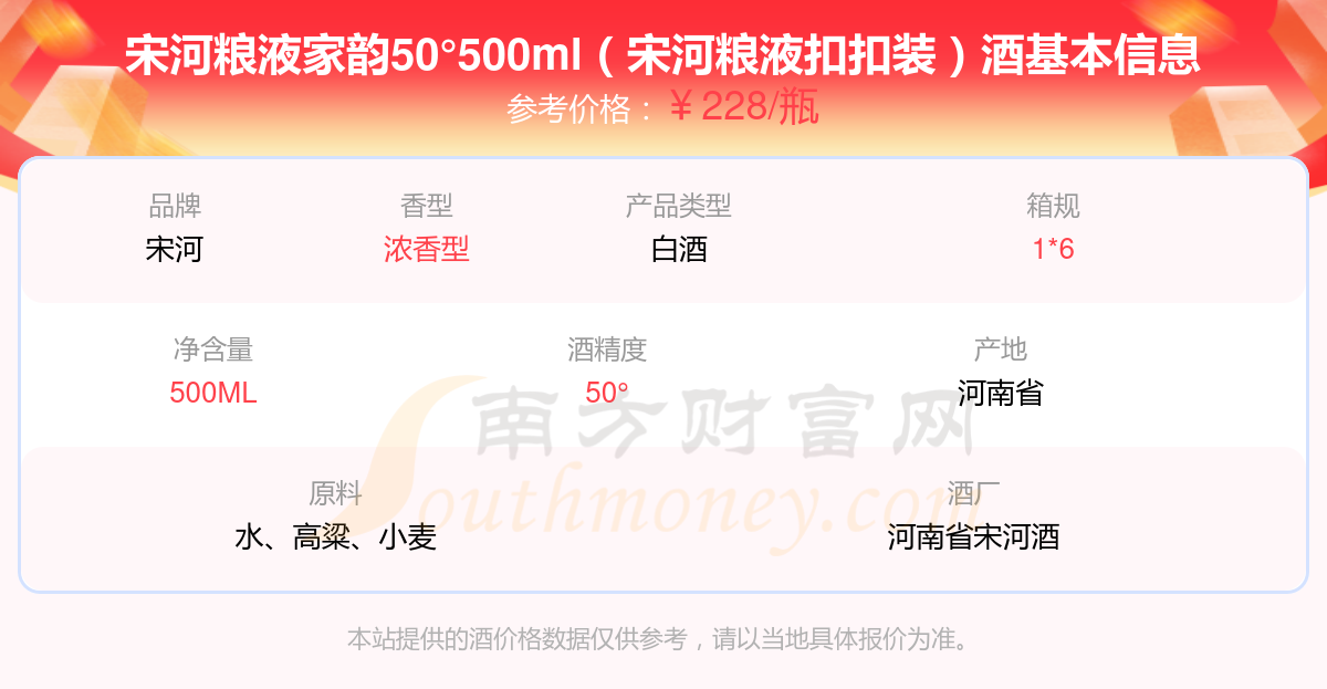 宋河糧液家韻50°500ml(宋河糧液扣扣裝)基本信息