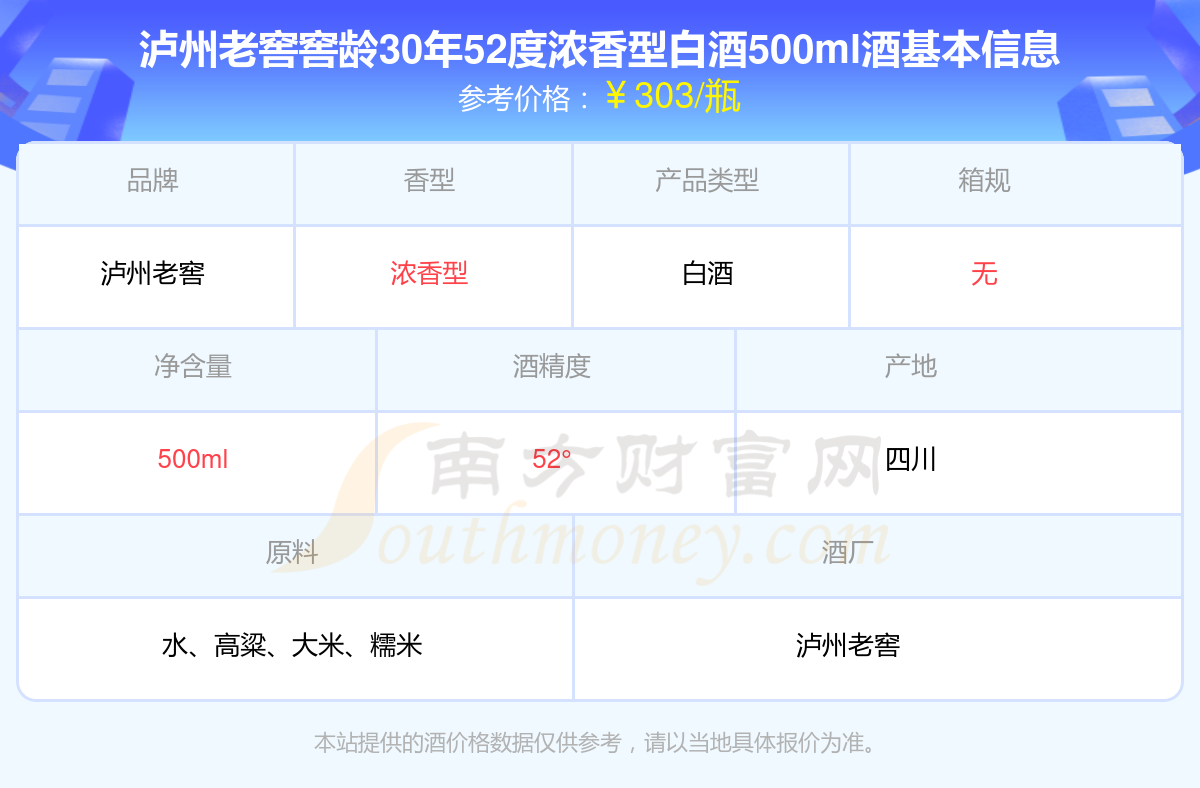 瀘州老窖窖齡30年52度濃香型白酒500ml基本信息