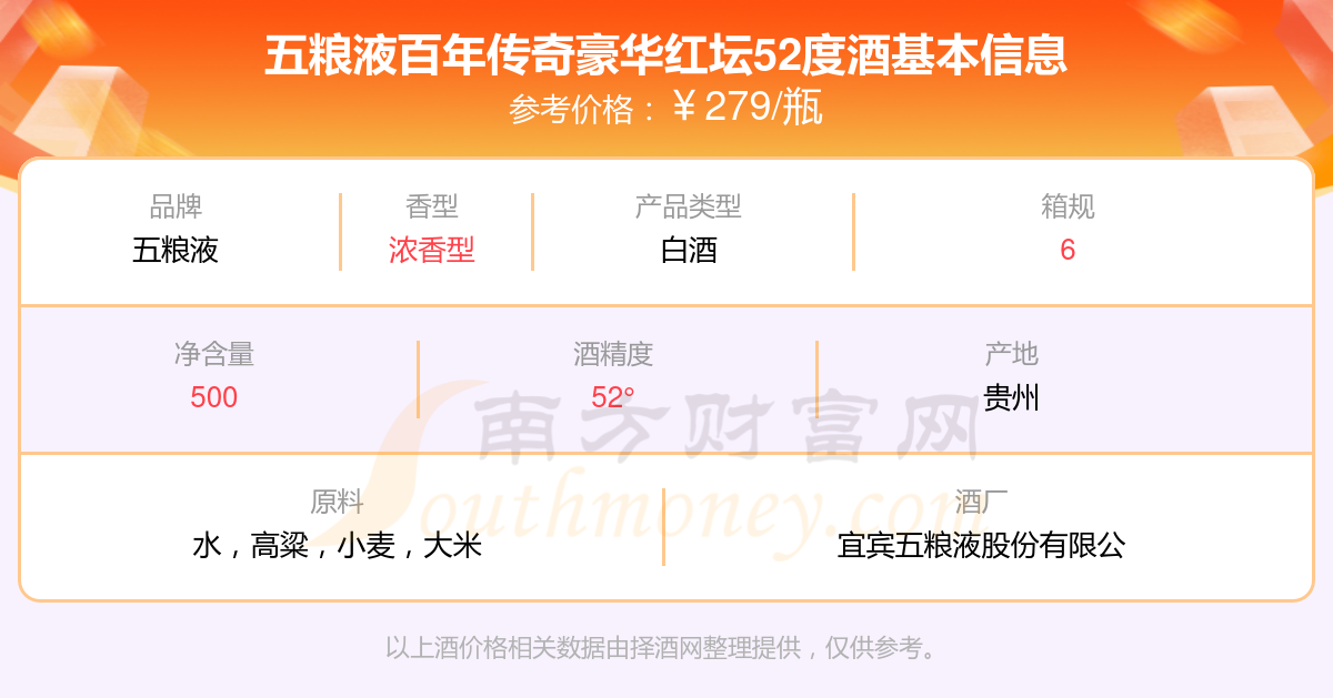 五糧液百年傳奇豪華紅壇52度基本信息