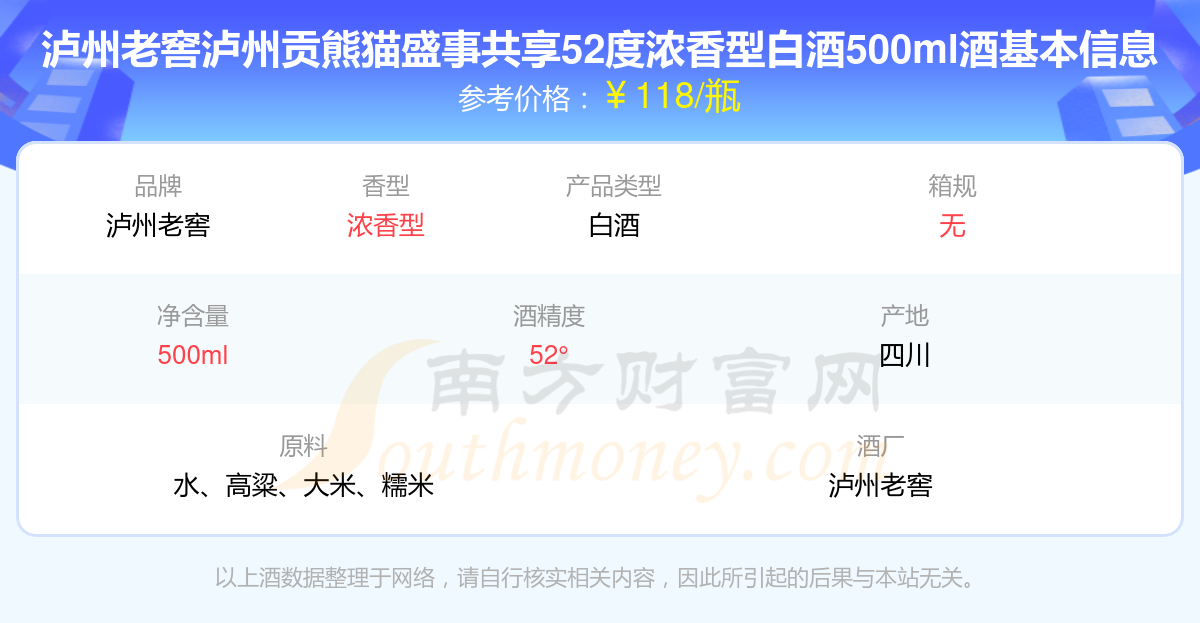 瀘州老窖瀘州貢熊貓盛事共享52度濃香型白酒500ml基本信息