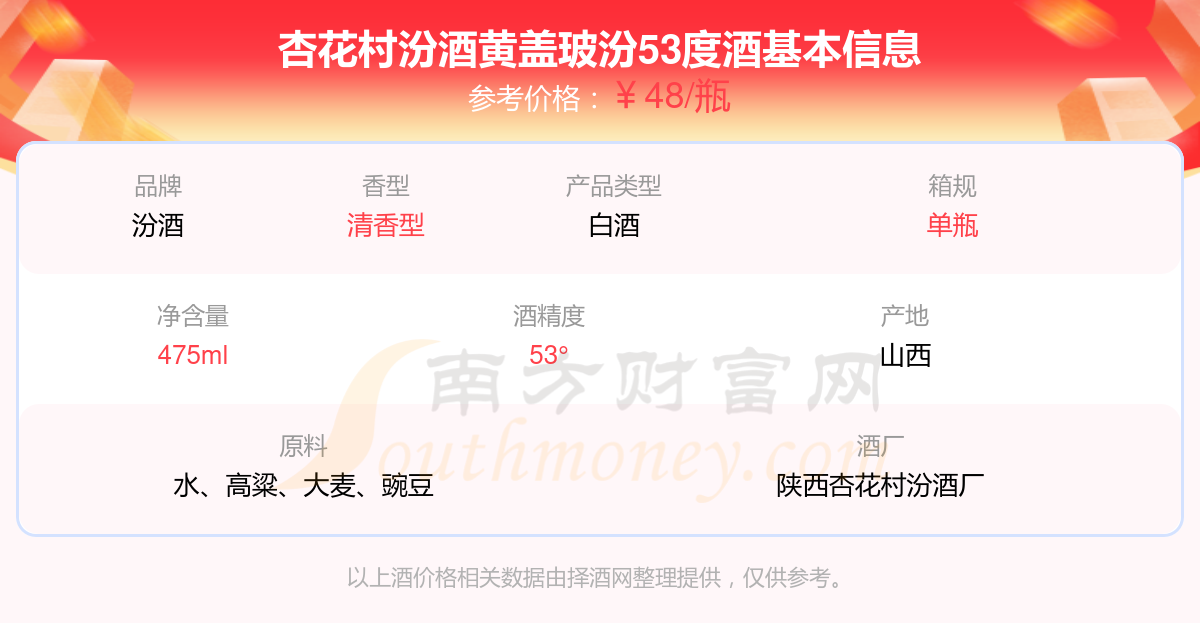 杏花村汾酒黃蓋玻汾53度基本信息