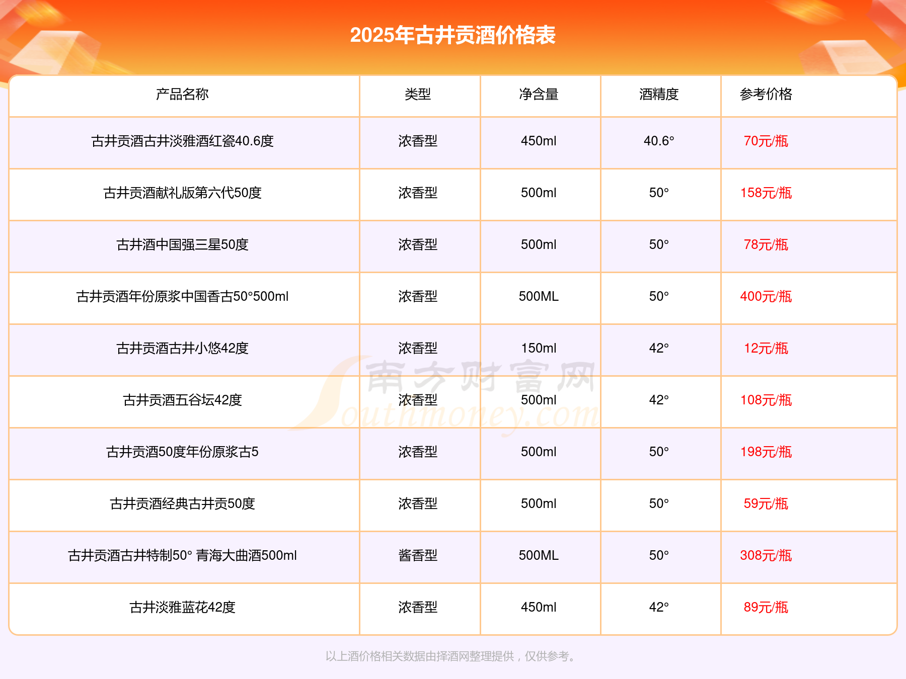 以上酒價格相關(guān)數(shù)據(jù)由擇酒網(wǎng)整理提供,僅供參考。