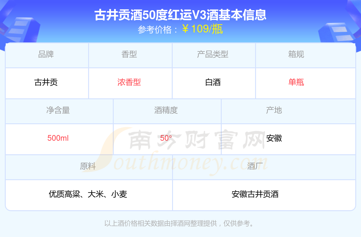 古井貢酒50度紅運(yùn)V3基本信息