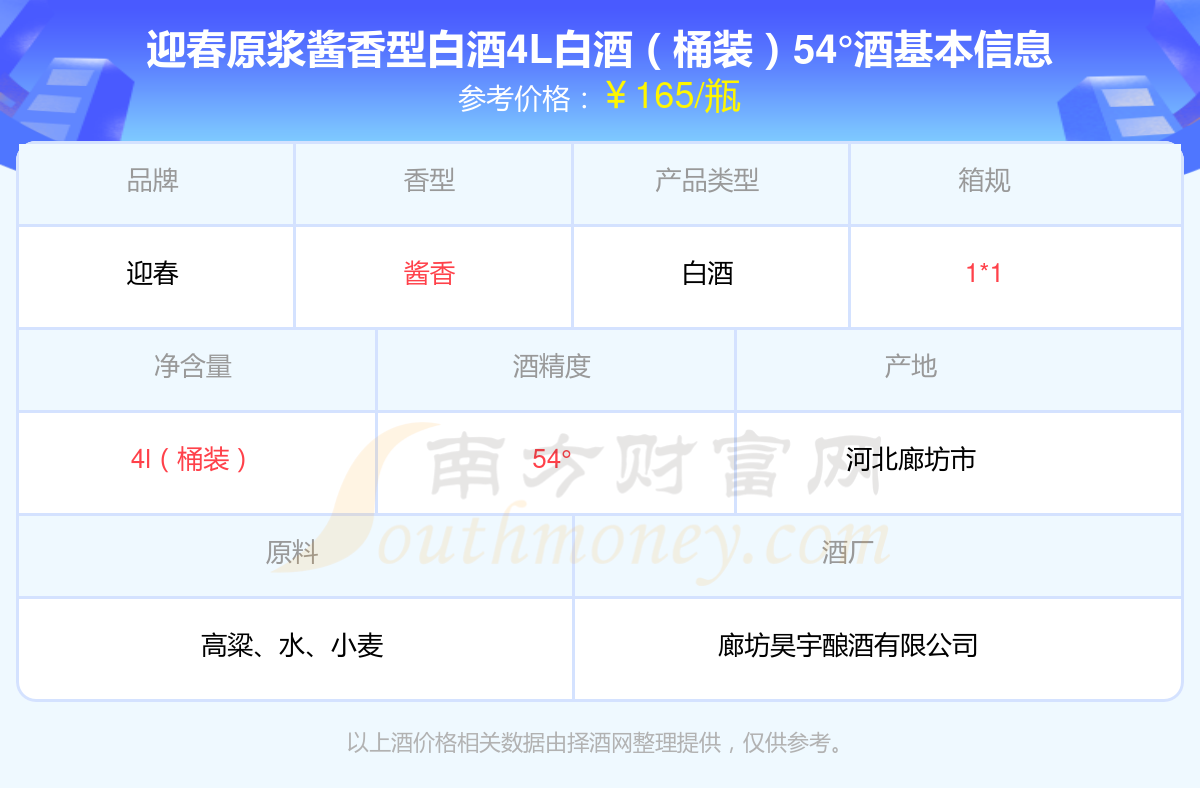 迎春原漿醬香型白酒4L白酒(桶裝)54°基本信息
