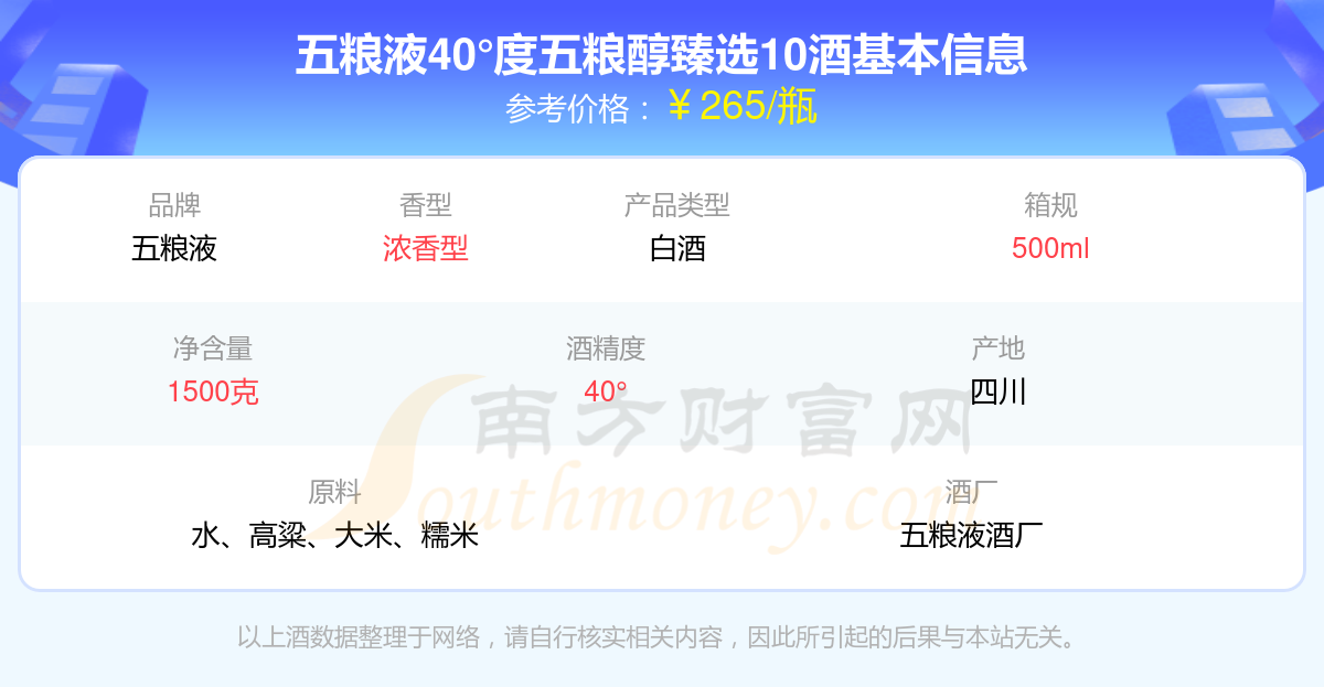 五糧液40°度五糧醇臻選10基本信息