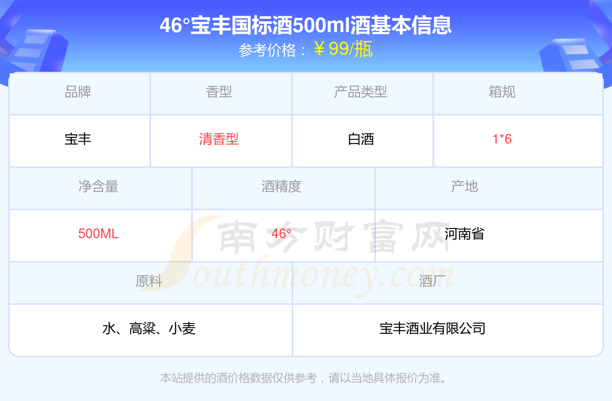 46°寶豐國標(biāo)酒500ml基本信息
