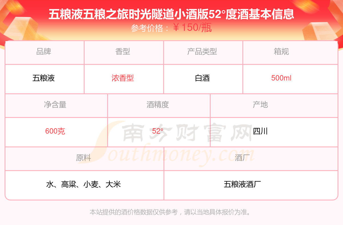 五糧液五糧之旅時光隧道小酒版52°度基本信息